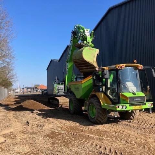 Frisesdahl er i gang i Rødekro Vi er i gang med at fjerne 7700 m² SF‑belægning, som knuses og genbruges direkte på pladsen. Sand, bærelag og ler afrømmes og genindbygges, så underlaget bliver klar ti...