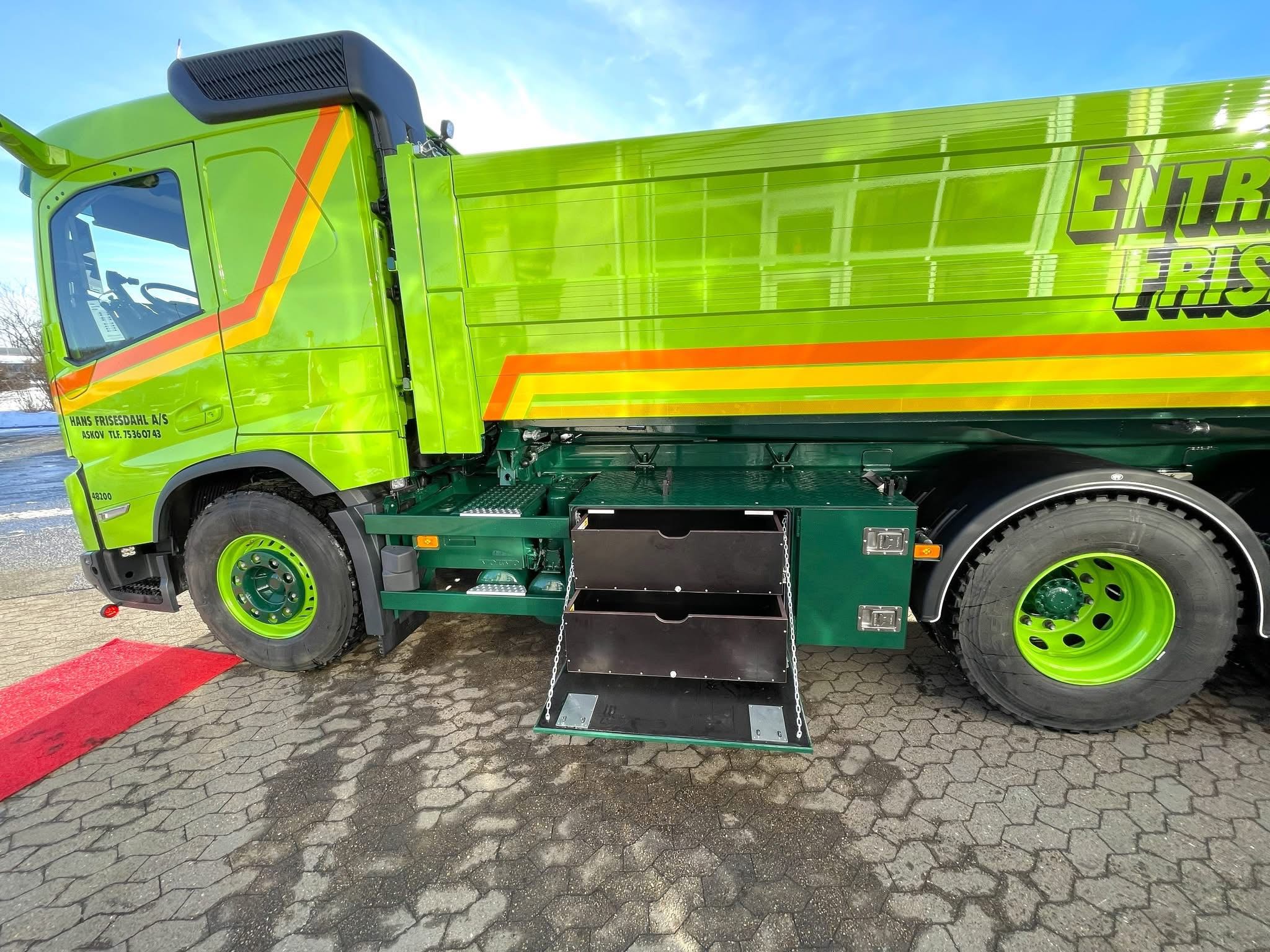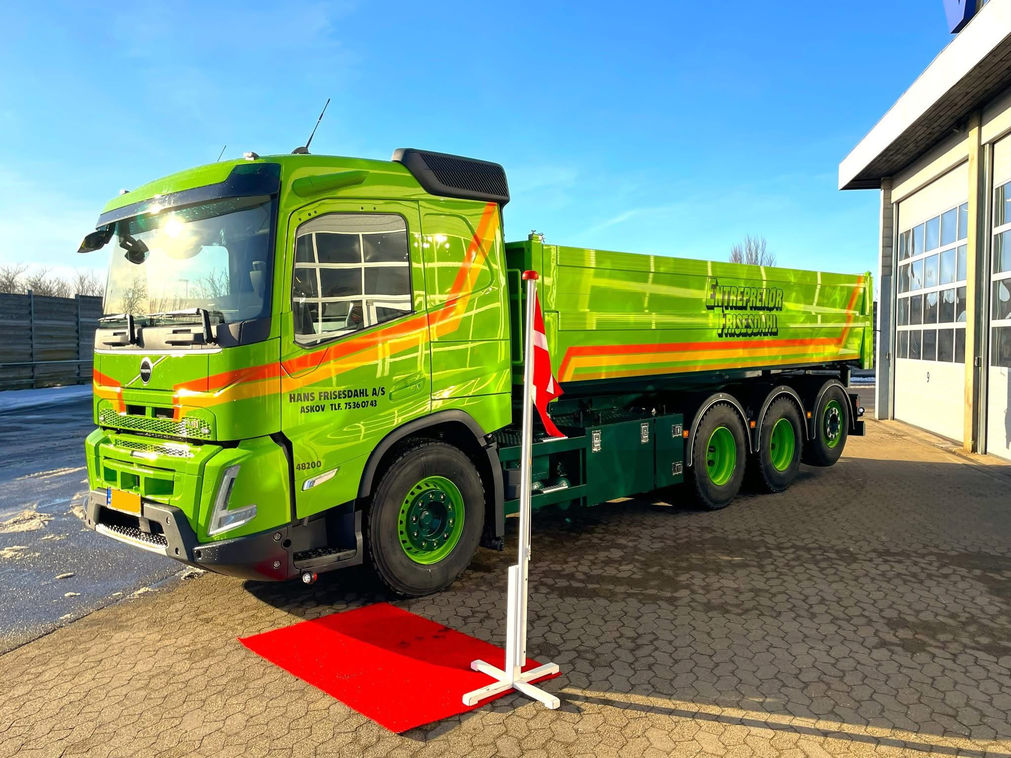 Hans Frisesdahl A/S har netop fået leveret en ny Volvo FMX af Autohuset Vestergaard A/S, Grindsted ved Steffen Andreasen. Der er tale om en Volvo FMX540 8x4 tridemtag med CMS kameraspejle, Sygic truck navigation, Work Remote fjernbetjening, VEB+ motorbremse, I-See typografisk fartpilot, I-Shift gearkasse med anlægssoftware og krybegear og Volvo Connect abonnement. HMF i Galten har opbygget bilen med tip lad og malet hos Mosegaards Autolakering ApS.
